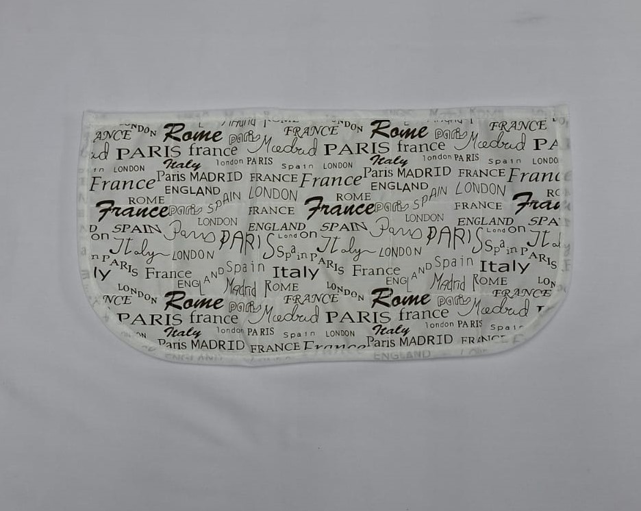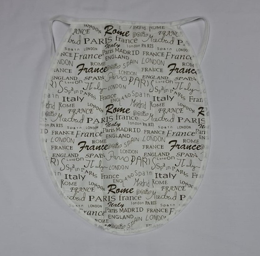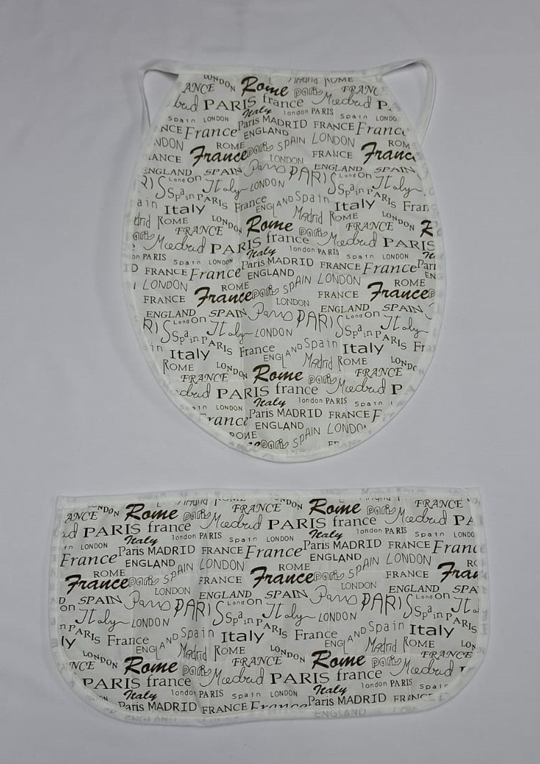 Accesorios WC en tela diseño letra café con terminaciones en sesgo crudo