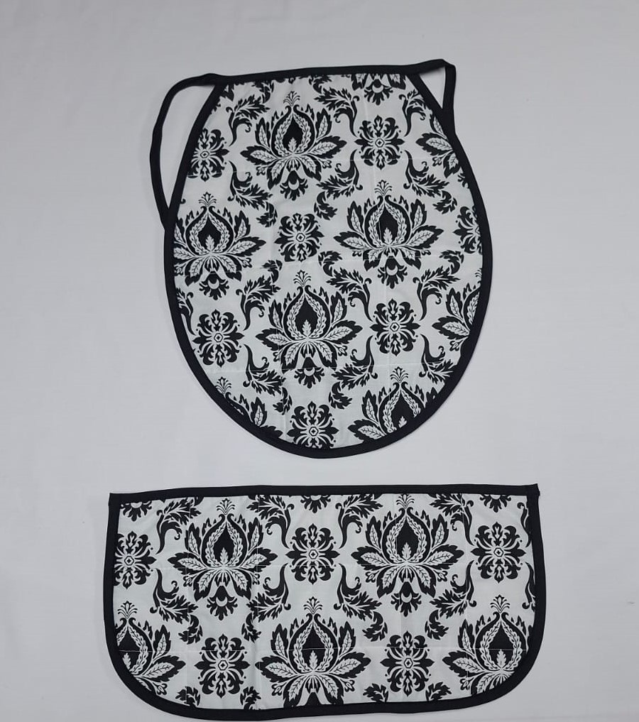 Accesorios WC en tela diseño vintage con terminaciones en sesgo negro