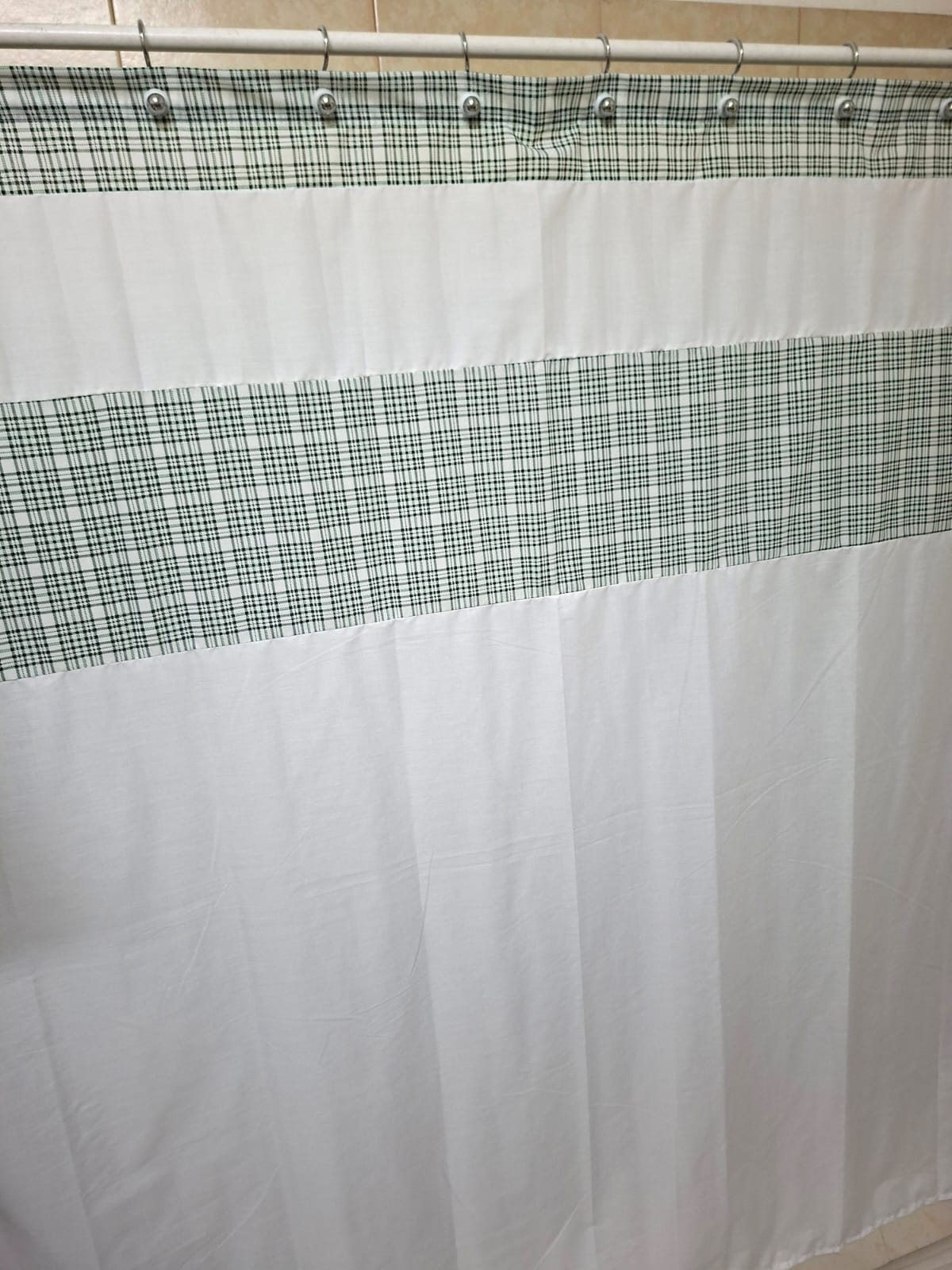 Cortina tela popelina color blanco con estampado cuadrille verde