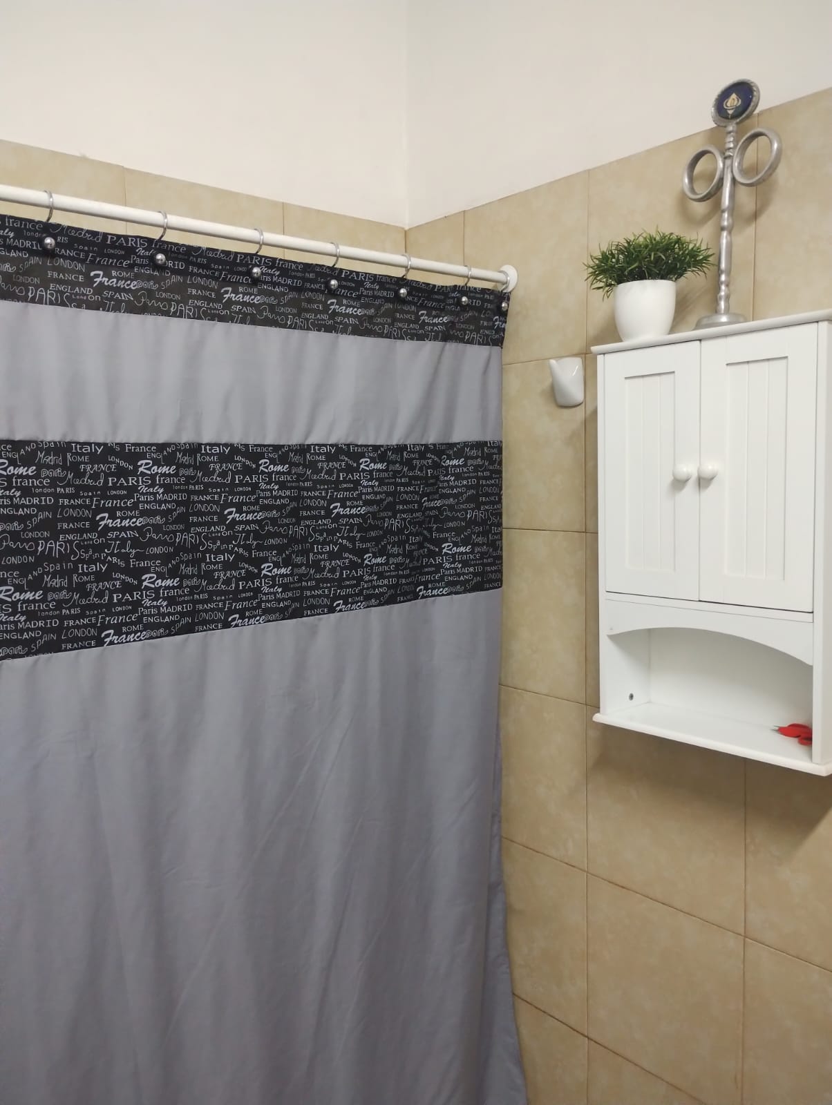Cortina tela popelina color gris con estampado letra negra
